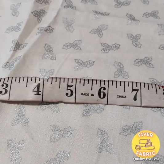 Silver Holly on White Cotton