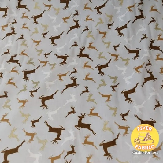 Jumping Reindeers on silver Cotton